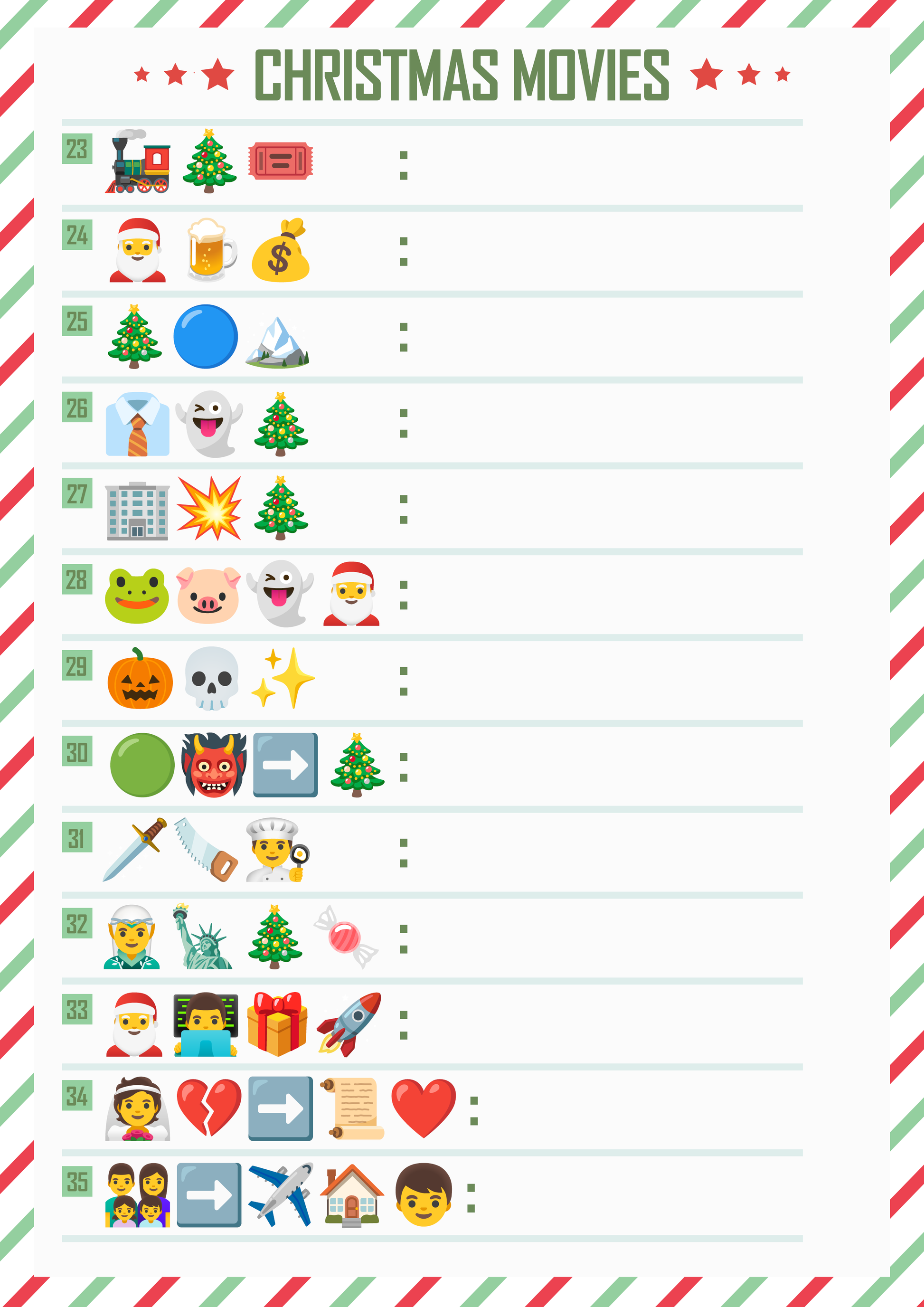 Gjør julefeiringen ekstra morsom med vår gratis Christmas Emoji Quiz! Denne unike quizen inneholder 35 spennende spørsmål fordelt på to populære kategorier: Christmas Music og Christmas Movies. Hvert spørsmål er en kreativ kombinasjon av emojier som beskriver en kjent julesang eller julefilm – oppgaven er å gjette riktig svar!