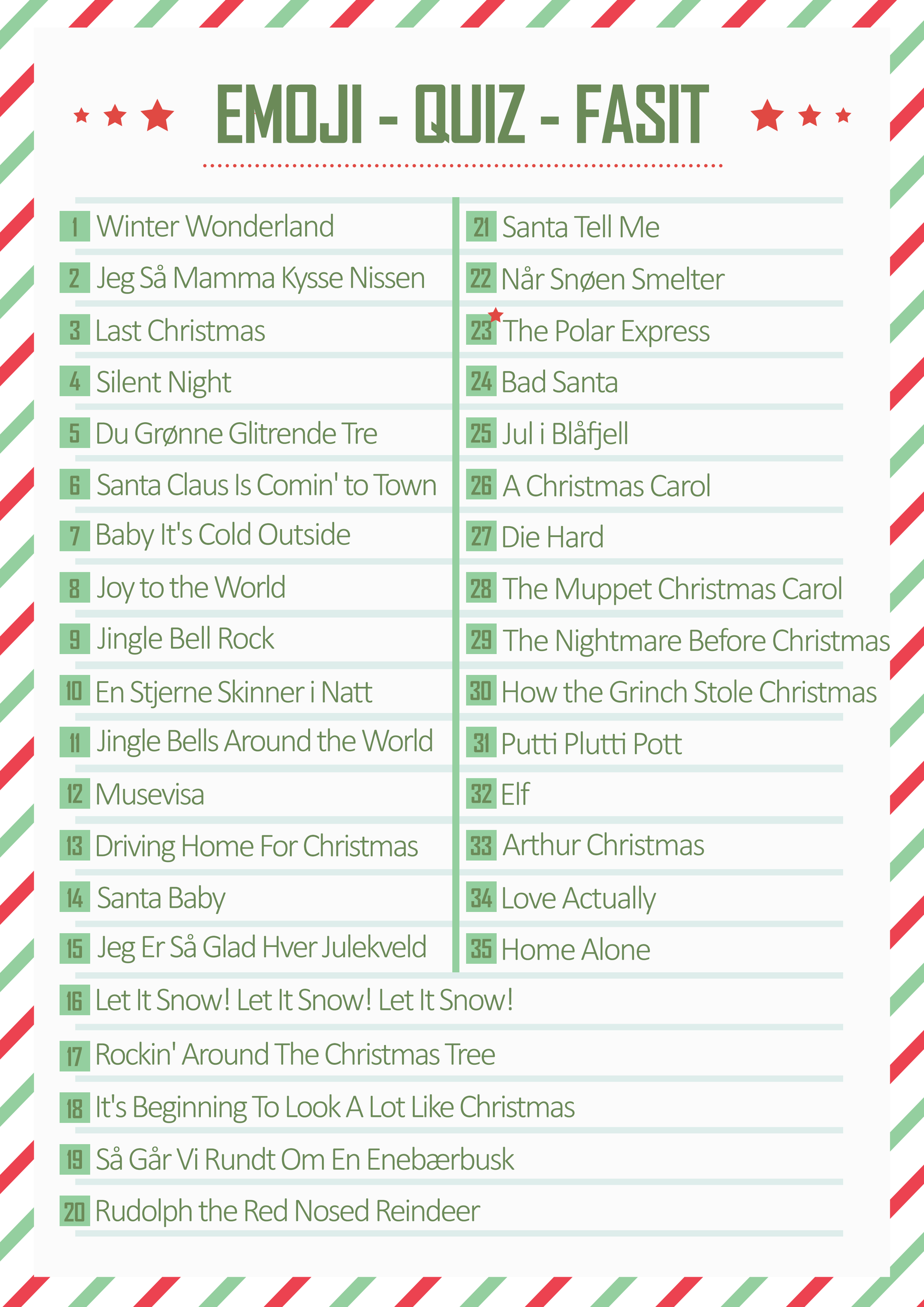 • Antall spørsmål: 35 (fordelt på Christmas Music og Christmas Movies)